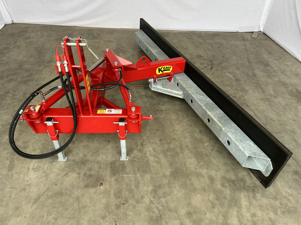 The feed alley scraper on the back is, like the other Kemp feeders, capable of swivelling 70 degrees, left and right. Because the slide swings 70 degrees, the feed can be slide well towards the cows and it will not start to accumulate. In addition, it is important that the feed is placed next to the vehicle, so that the vehicle does not drive over the feed. Therefore, it is important that the scraper can pivot. Pivoting 70 degrees is possible through the use of two hydraulically driven cylinders. The second advantage of these two cylinders is that there is more power to pivot the scraper during feeding.