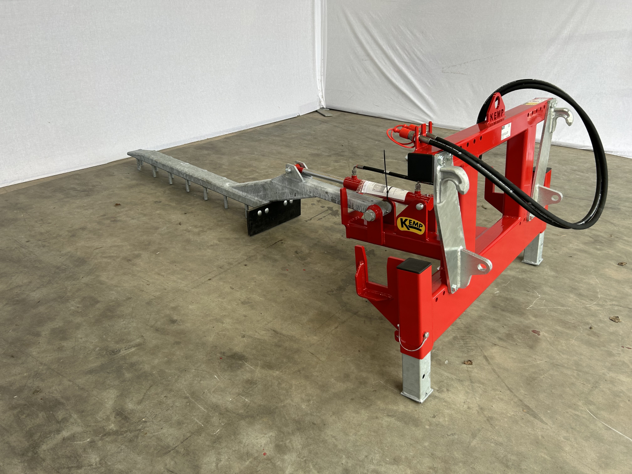 The width of the normal rake (DSV) is 1.260 mm in folded position, the working width is 2,500 mm from the heart of the wheel loader and the operation in the box is 1,500 mm. The weight is ± 230 kg. The width of the vehicle may not exceed 1,600 mm.